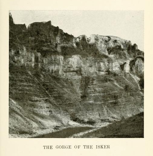 Искърският пролом е тъмна, няколко часа дълга теснина, където подобните на кули голи скалисти брегове често така се приближават, че едва оставят място за светло-зелените води на реката, която с чуден наклон се спуща като стрела надолу. Каниц е намерил в 1871 година в дефилето развалините на 8 римски кастели; тяхното число при по-подробни изучавания естествено ще се увеличи. Те са служили за охраната на този така важен военен път, който е свързвал Траяновата Дакия през Сердика с Дирахиум и Солун. Неговата западна част описахме вече по-горе. Под Искърския пролом пътят е вървял покрай реката, на чийто брегове са се виждали развалините на многобройните римски градове и крепости, а до устието на реката – Colonia Ulpia Oescus (развалините при Гиген). Там се е намирал вторият стабилен римски мост на Дунава, чийто каменни подпори между Гиген и Челей на румънския бряг при намаление на водите могат да се забележат понякога и до днес на 1-2 м над повърхността.
